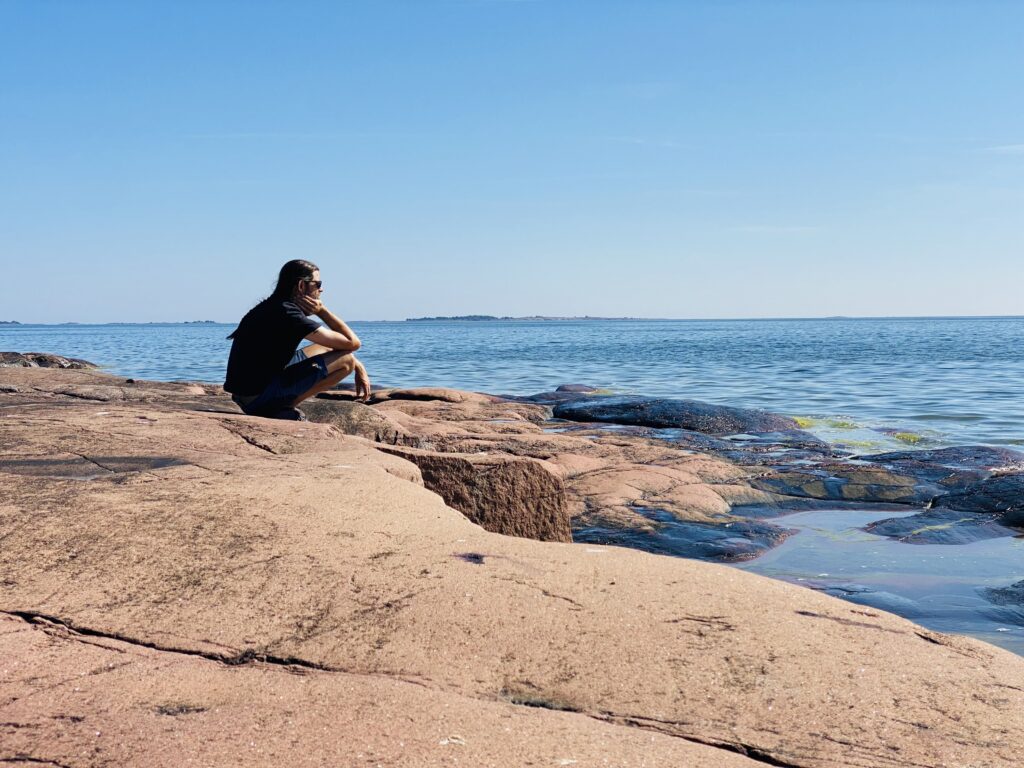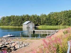 Von Rödhamn zu unserer Ankerbucht sind es 33 Meilen. Wir fahren bei um die 10 Knoten los und binden schon mal das erste Reff ein. Über den Tag soll der Wind zunehmen, besonders am freien Stück zwischen Åland und Schweden. Bevor wir in den geschützten Schärengarten von Stockholm kommen, sind es gute 20 Knoten aus Süd. Die Genua haben wir auch schon einmal eingerefft. Zwischen den Schären ist der Wind weg und wir motoren zur Ankerbucht. Dort liegt leider schon ein schwedischen Boot an der Schäre und die Boje ist auch belegt. Wir lassen den Anker fallen, genießen die Sonne mit einem Kaffee und denken an unsere schöne Zeit in Åland und Finnland.