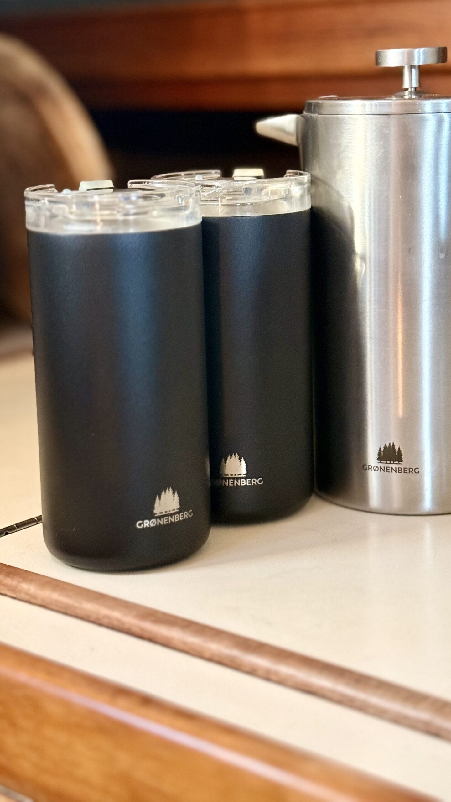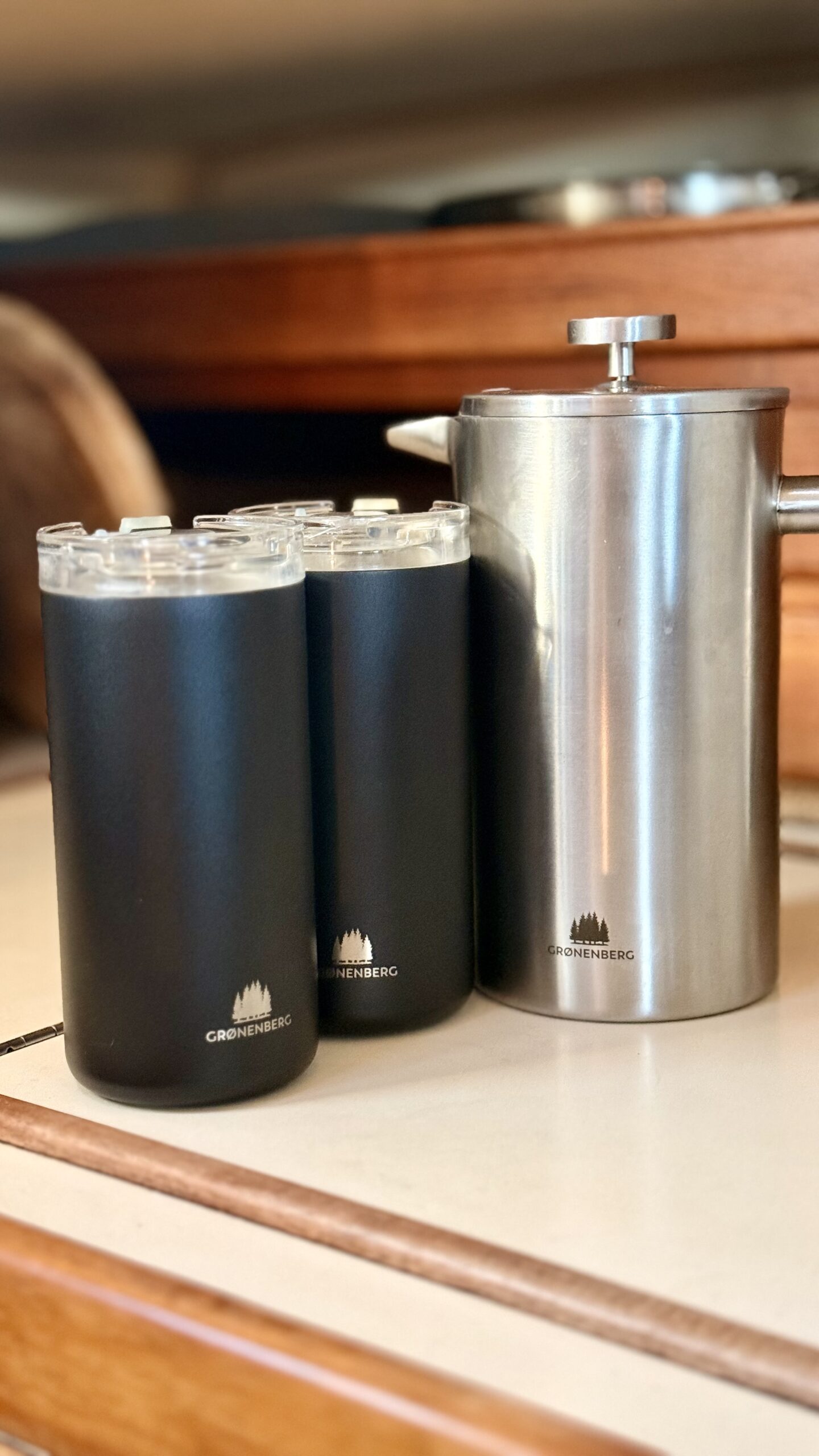 Ohne guten Kaffee geht nichts – zumindest bei uns. Auch unterwegs wollen wir nicht darauf verzichten. Wir sind super zufrieden mit unserer French Press und unseren Thermobechern der deutschen Firma Grønenberg (keine bezahlte Werbung!). Entscheidend für den Kauf war zunächst nur die Optik. Aber neben dem zeitlos schönen Design sind sie auch äußerst praktisch.