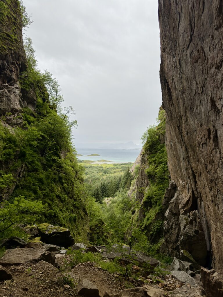 Als der Sturm durchgezogen war, ging’s weiter Richtung Süden. Der Schlag von Tonnes nach Nesna war ein wilder Ritt, mit gut Welle von achtern und mehr Wind als gedacht. Nur mit der Genua im zweiten Reff segelten wir vorm Wind und machten gut 6 Knoten, in Spitzen mehr als 8. Es war spaßig zum Teil aber auch nur noch gerade so innerhalb unserer Komfortzone. Am übernächsten Tag segelten wir weiter nach Sandnessjøn. Ein schöner Hafen und Ort, nur ein Katzensprung zu den berühmten sieben Schwestern aus der Helgelandssage, die wir leider in den zwei Tagen, die wir dort waren, nicht sahen. Es goß quasi durchgehend. Also nutzen wir die Zeit zum Einkaufen und Wäschewaschen mit der im Preis inbegriffenen Waschmaschine und -trockner.