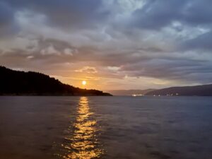 Auf dem Weg Richtung Norden hatten wir den Abstecher zum Svartisen ausgelassen. Nach den Erfahrungen der letzten Wochen mit vollen Stegen/Häfen hatten wir keine Lust, den ganzen Weg in den langen Fjord hineinzumotoren und dann wieder zurück, wenn der sehr kleine Steg voll ist. Denn auch viele Ankermöglichkeiten gibt es dort nicht. Als wir in Bodø starteten, war der Plan, nur ein paar Meilen Richtung Süden zu fahren und dann am nächsten Tag weiter zum Svartisen. Doch unterwegs wurde beim Blick auf YR.no klar, dass wir vermutlich nur noch einen schönen Tag haben, bevor ein Sturm die Küste trifft. Und nicht nur das: Auch regnen sollte es quasi durchgehend. Wir wären also erstmal auch nicht wieder weggekommen aus dem Fjord. Und der Steg/Ort hat keinerlei Service. Dort ist mehr oder weniger nur der Weg zur Gletscherzunge. Mehr nicht. Unsere Fahrt war dann wahrlich eine „Regenbogentour“. Wir sahen ungefähr 7 wunderschöne Exemplare, wurden aber auch genauso oft nass und sorgten damit bei anderen für schöne Regenbögen. Die Fahrt in den Fjord war dann noch sehr windig und mit hoher Welle ziemlich spektakulär. In Engen kurz vor Einbruch der Dunkelheit angekommen war alles friedlich und am Steg ein Plätzchen für uns frei.