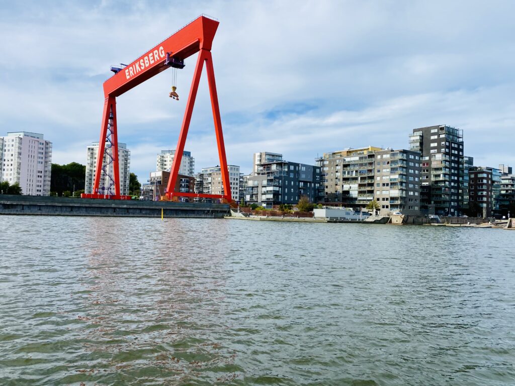 Nach dem Festungsbesuch rief ich vom Steg aus die Jordfallsbron an und fragte nach der nächsten Öffnung. Der nette Mann sagte, dass es noch etwas dauere und rief uns später kurz vor Öffnung zurück. So ersparten wir uns Wartezeit vor der Brücke in der nicht unerheblichen Strömung. Die nächste Brückenöffnung der Göteborger Hisingsbron wäre 14:35 Uhr oder 16:35 Uhr. Da wir die erste vermutlich nicht eh geschafft hätten, trödeln wir fast im Leerlauf und mit Strömungsgeschwindigkeit den Fluss hinunter nach Göteborg. Das Wetter war noch mal schön und wir genossen die Fahrt sehr.