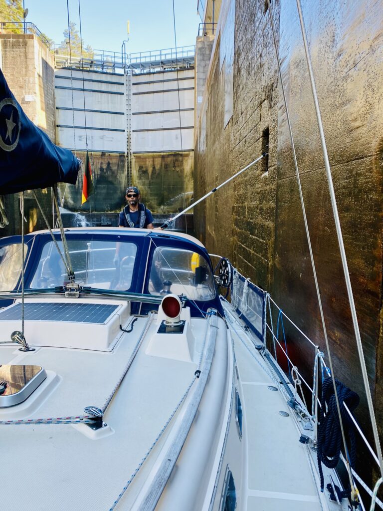 - Für den Trollhätte-Kanal braucht man unbedingt ein Fenderbrett. Die Wände der Schleusen sind sehr uneben und eher für die großen gedacht.