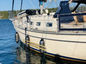 Endlich wieder raus aus der Stadt und der engen Marina, rein in die Schärenwelt von Nyköping. Erster Stop in Valsviken, nur 3 Meilen vor Nynäshamn. Am nächsten Tag ging es durch den Dragets Kanal. Gerade mal so breit wie unsere Tiamat (rund 4 Meter) und durch Bäume begrenzte lichte Höhe um die 16 Meter eher was für kleinere Schiffe. Tief ist es dort durchgehend um die 2 Meter. Ein absolutes Erlebnis. Wir ankerten eine Nacht in Paltmarsholmen und am nächsten Tag ging es nach Öja. Wir hatten uns den nördlichen Hafen ausgesucht. Nicht empfehlenswert. Ungepflegt, unruhig und unfassbar teuer (385 SEK). Die Insel jedoch ist eine Augenweide.