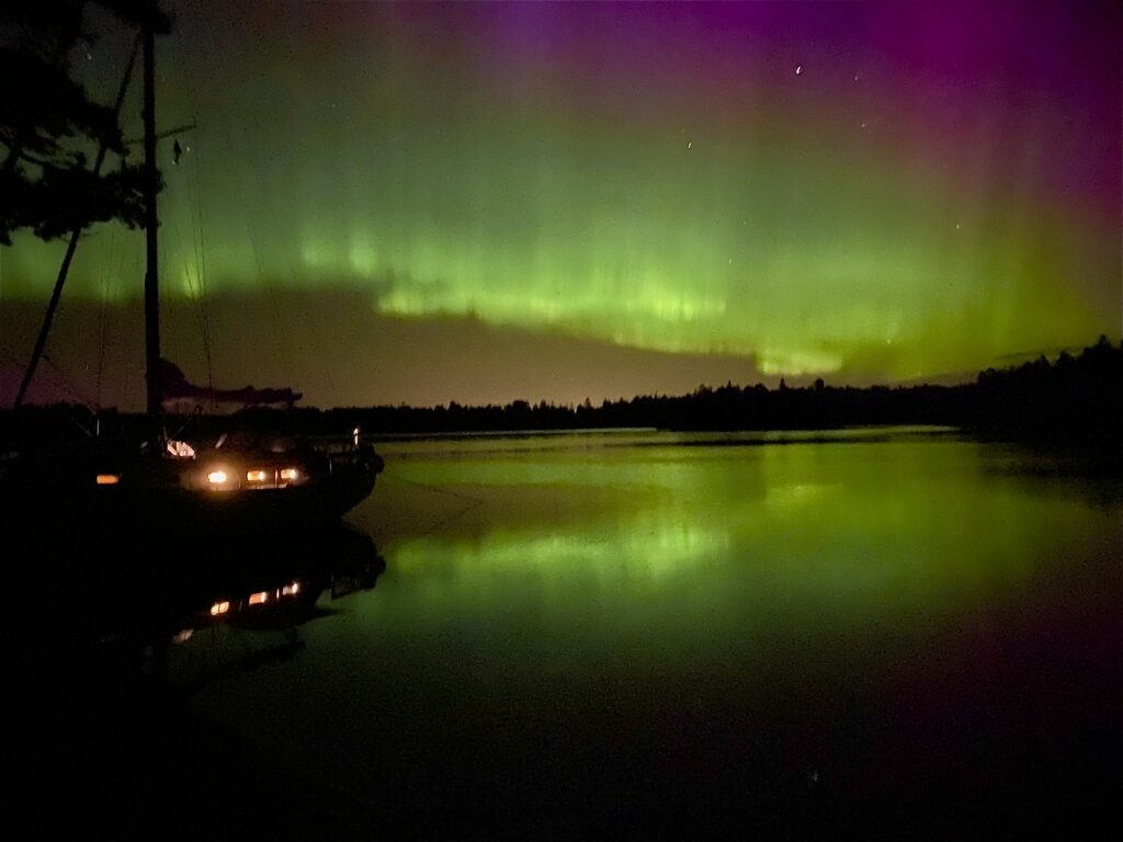 Und als ob uns das Universum unseren Mut belohnen wollte, gab es in der Nacht Polarlichter über Schweden. Und was für welche. Wir saßen mit einem Bier auf der Schäre und haben uns nicht sattsehen können. Mit guten Reisewind aus Norden ging es am letzten Augusttag zum letzten Ankerplatz an der Ostküste: Vattenholmen (einer Insel im Bråvikens Naturreservat, Nyköping).