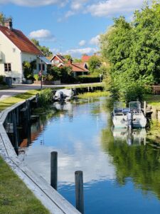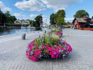 Nach Trosa mussten wir den nächsten Tag wieder motoren. der achterliche Wind war zu schwach zum segeln. Dort angekommen waren wir direkt verliebt in das kleine Örtchen. Es war ein bisschen wie eine Mischung aus Schweden (Häuschen) und Niederlande (Grachten), denn es wand sich das Trosaån durch die Stadt und es gab kleine Brücken über den Fluss. Die stürmischen Tage haben wir hier gut verbracht und die nette Hafenmeisterin gab uns noch 20% Rabatt für unseren einwöchigen Aufenthalt.